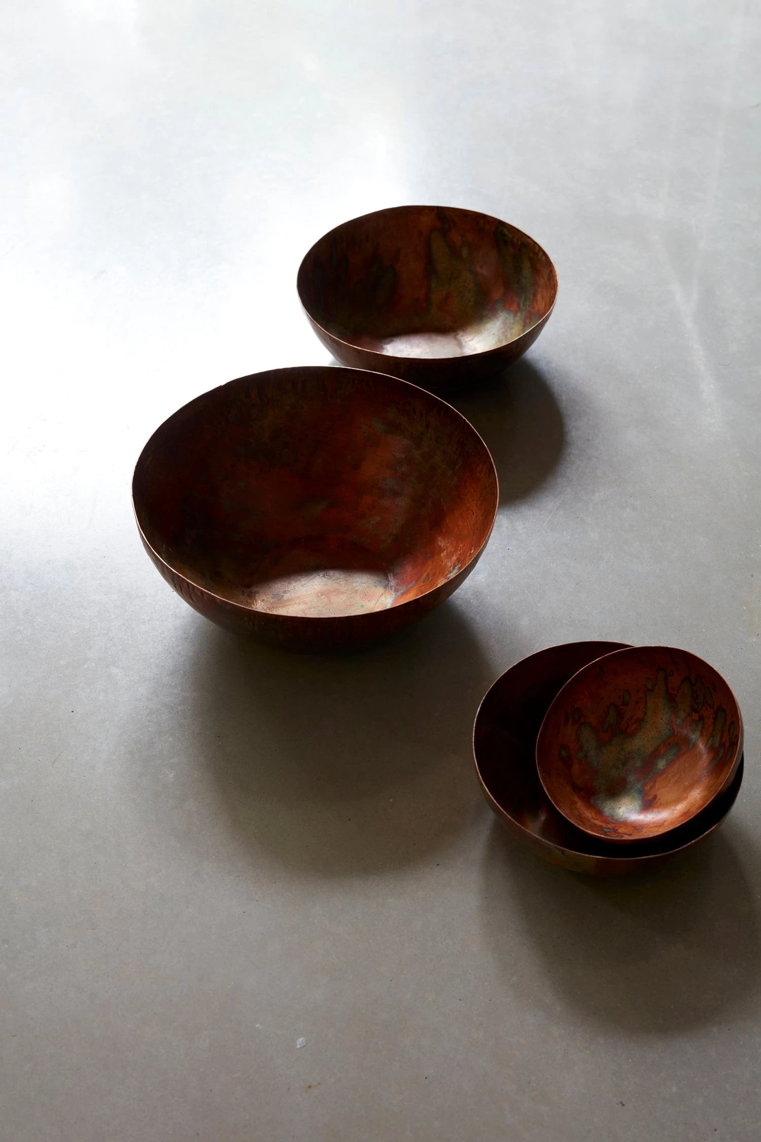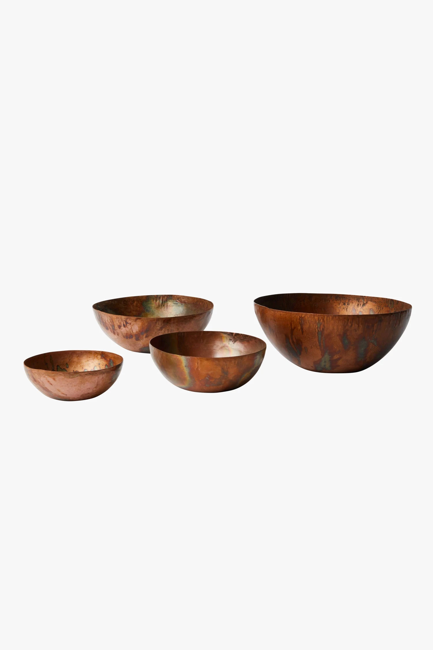 Bring metallic details into your space with our set of four Molten Copper Bowls. Crafted from iron with a copper antique finish, the set features four bowls of varying sizes for versatile interior styling. Fill yours with pot pourri, snacks, trinkets, or display alone for a sleek, sophisticated finishing touch.