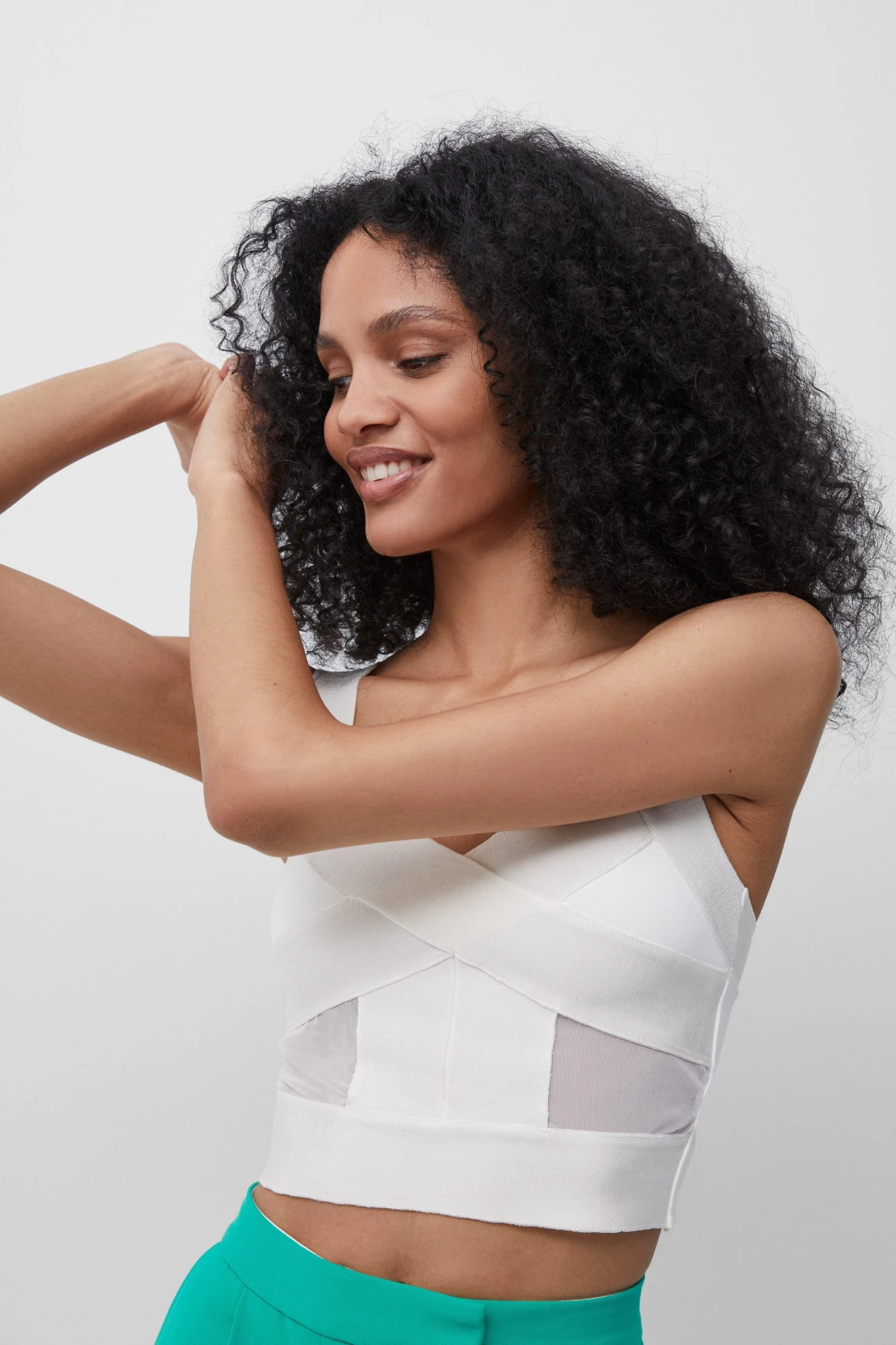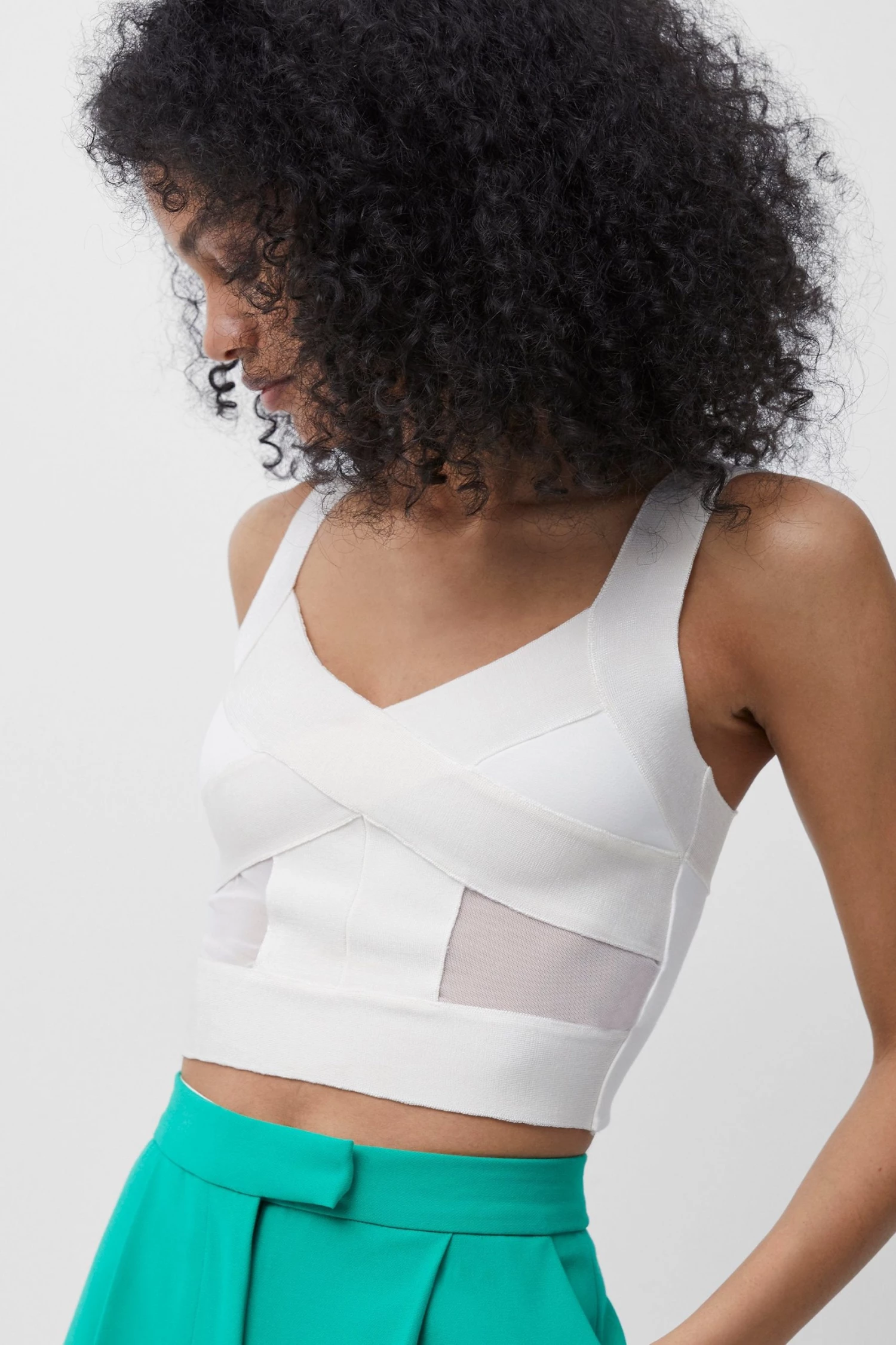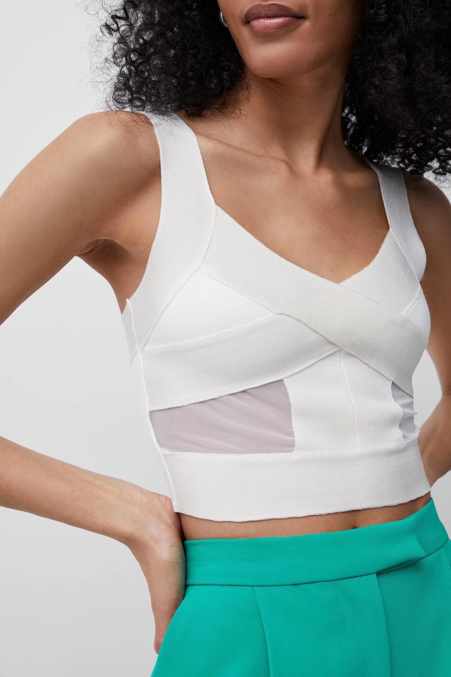Get ready for evenings in the city with the Tella Crop Top. Featuring an alluring V-neckline, flattering figure-hugging fit, stretch fabric and eye-catching mesh panels.
