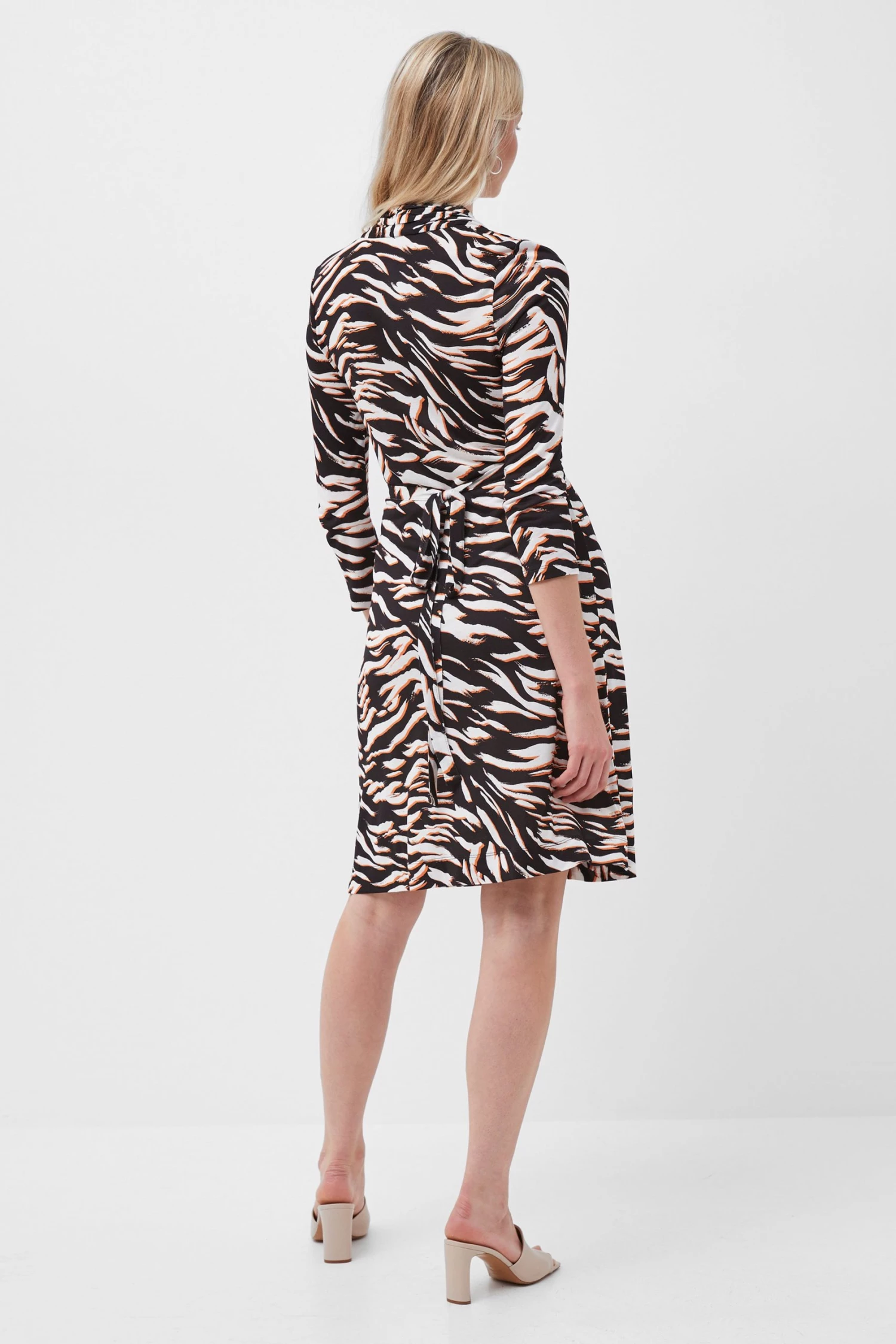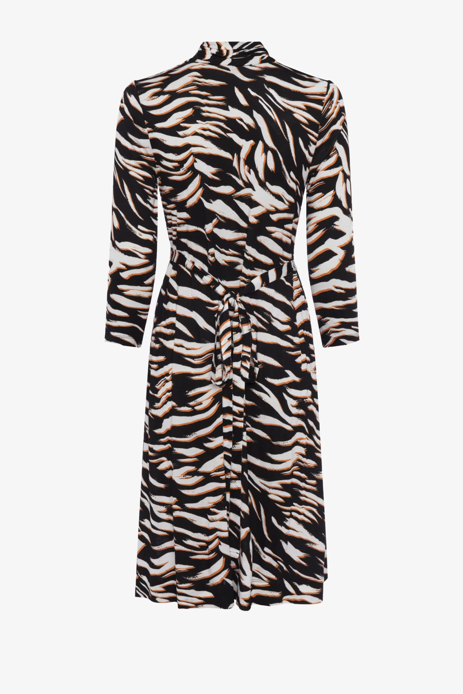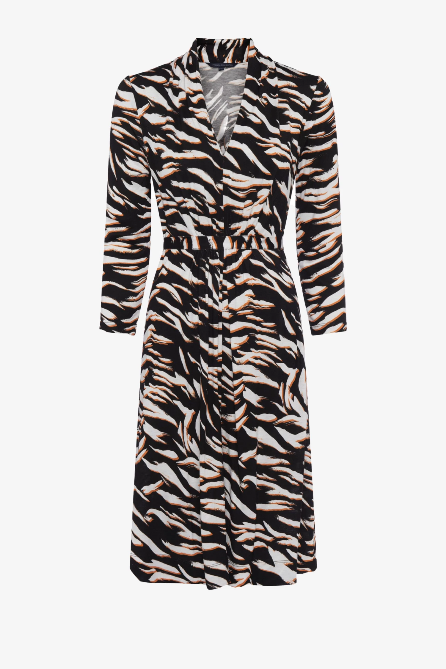 Bring the jungle into your wardrobe minus the effort with our Thita Dress. Printed with tonal tiger stripes, it features a V-neckline, long sleeves and fitted waist.