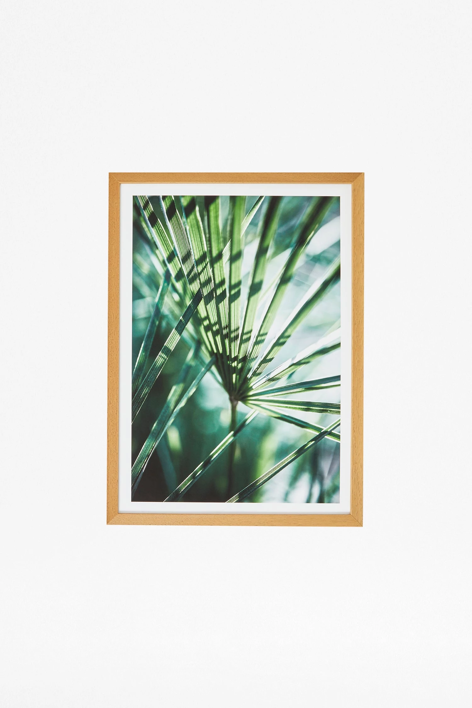 - Mounted leaves print with natural hardwood frame