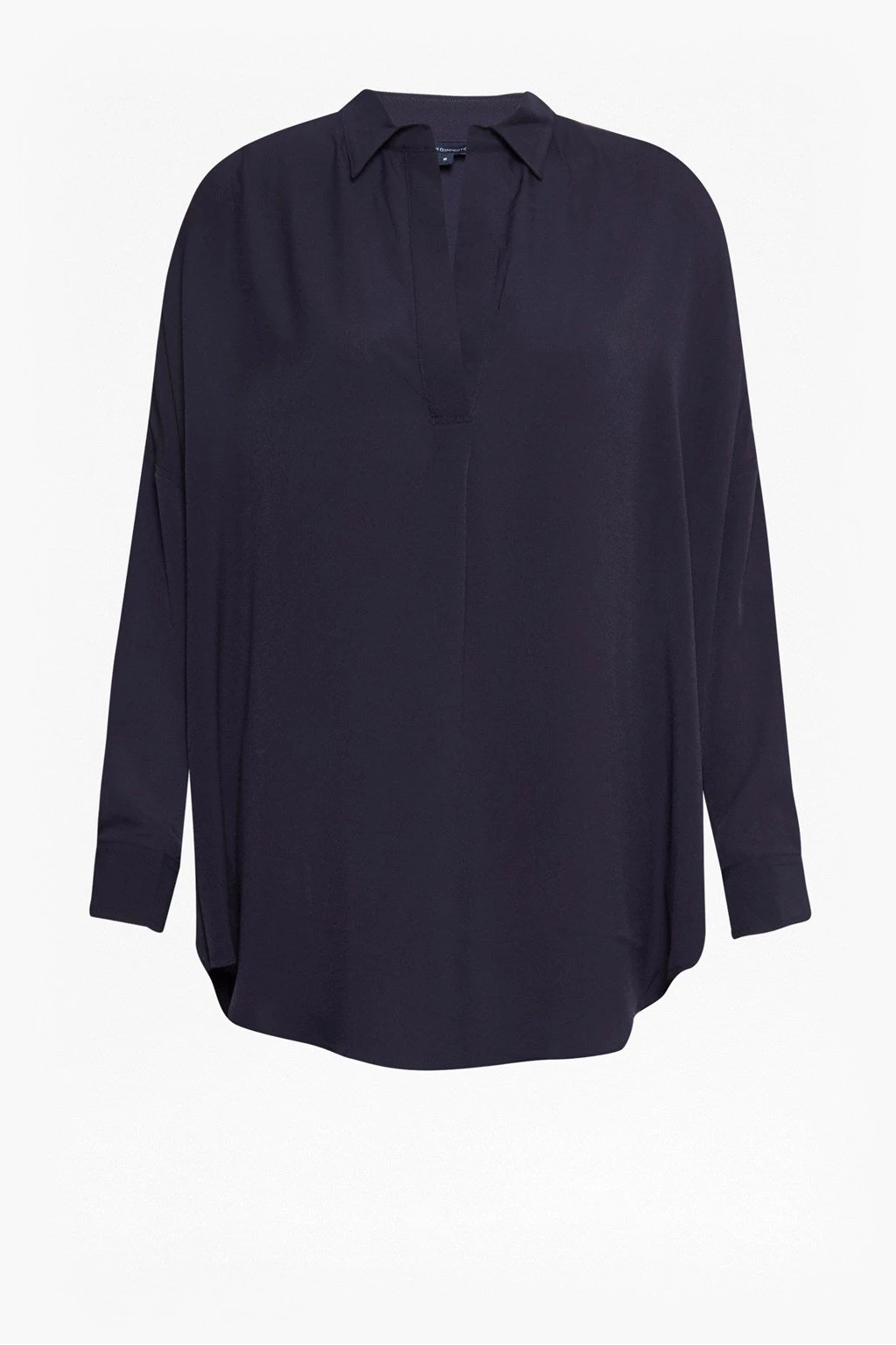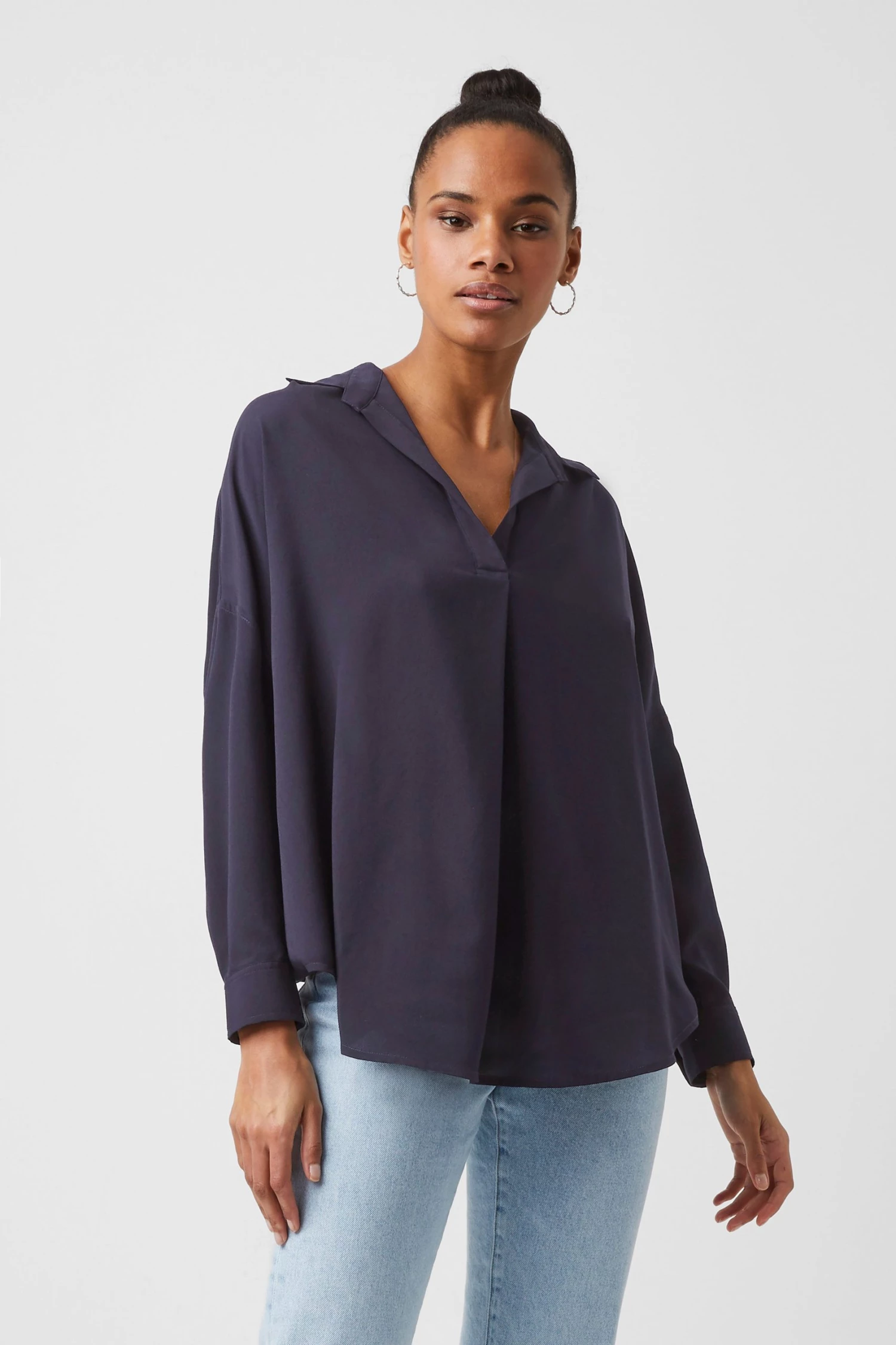 Our best-selling pop over shirt has been given a new season update with a lightweight crepe feel fabric. The loose-fitting slip on shirt is given a draped, loose look, complementing the casual silhouette. Pair the long-sleeved shirt with everything from culottes to favourite denim for a year-round essential.
