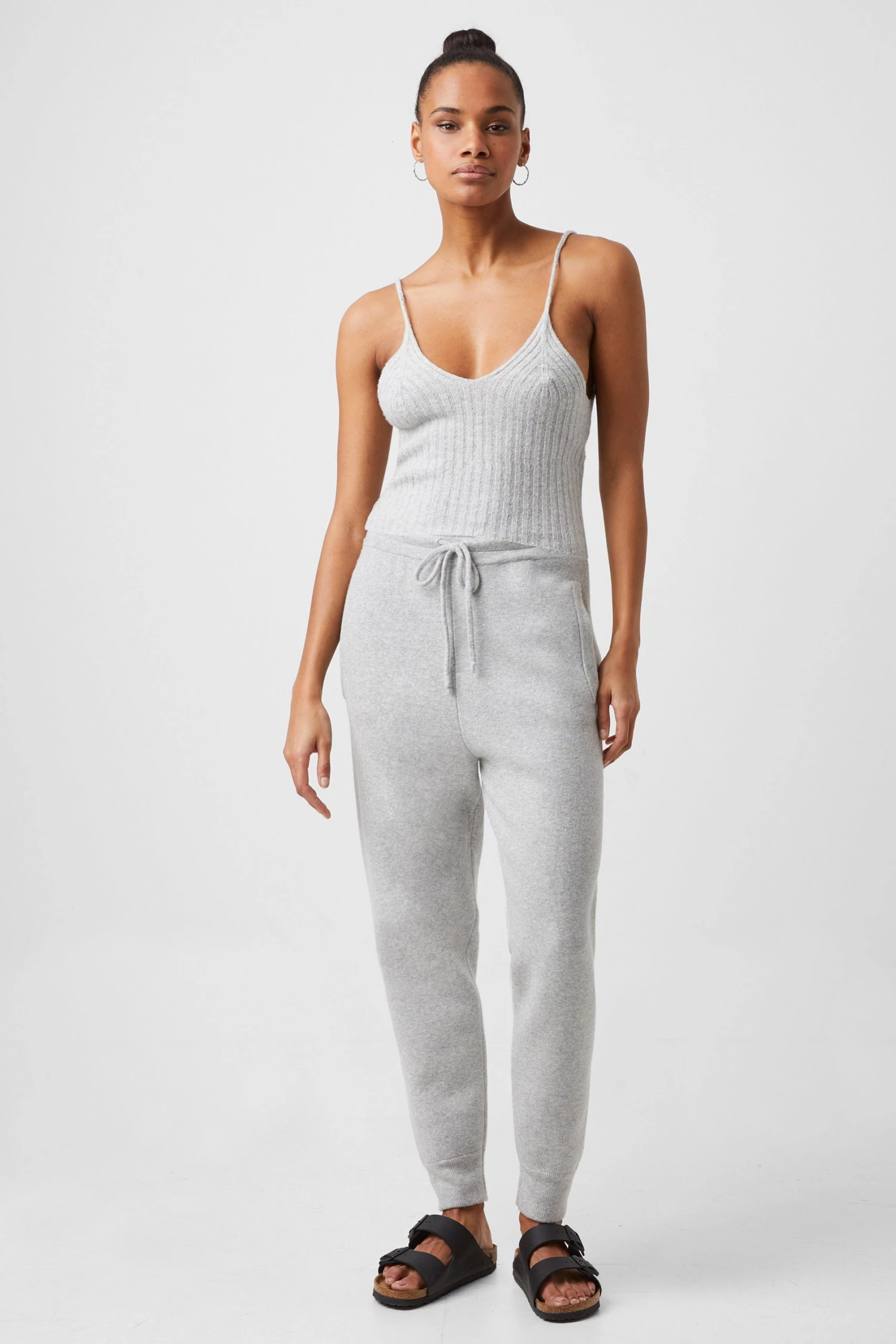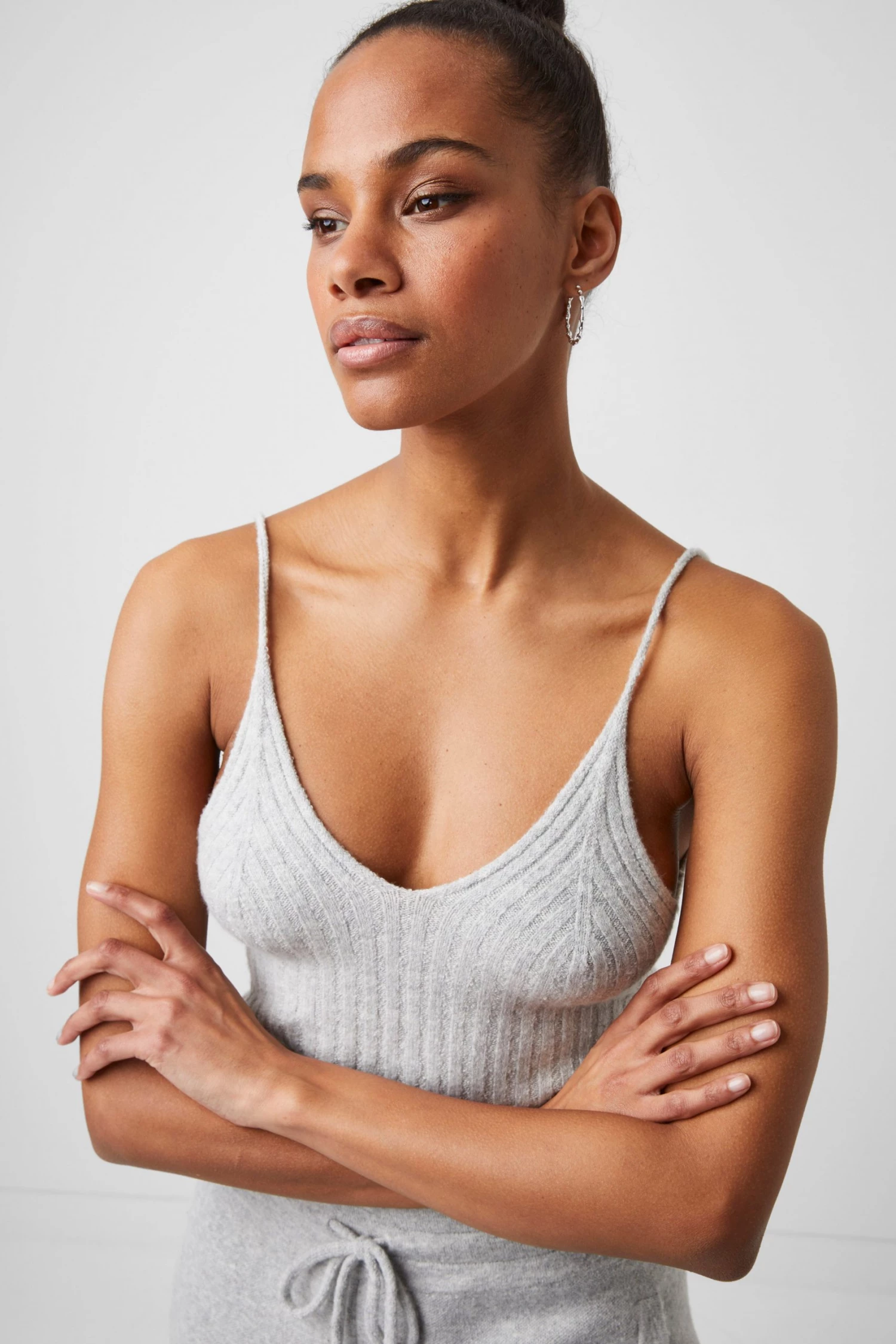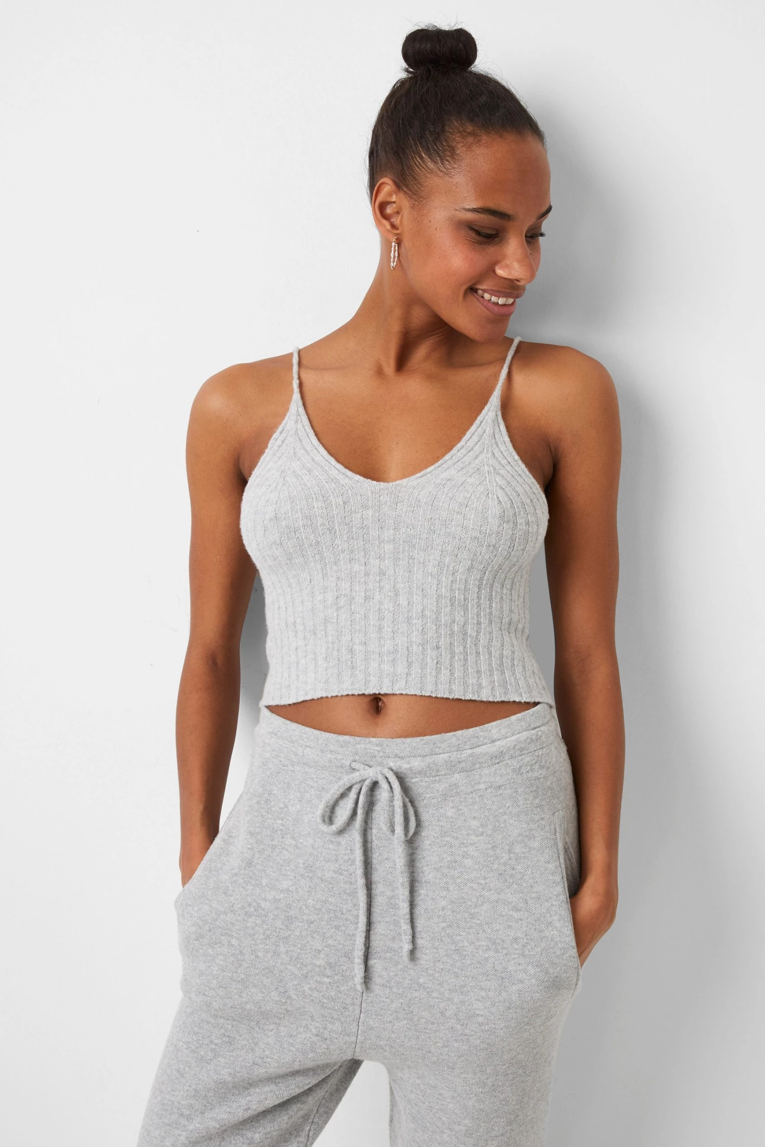 Go from the living room to the city in the Vhari Loungewear Strappy Crop Top. Crafed with a soft ribbed body in a sleeveless design.