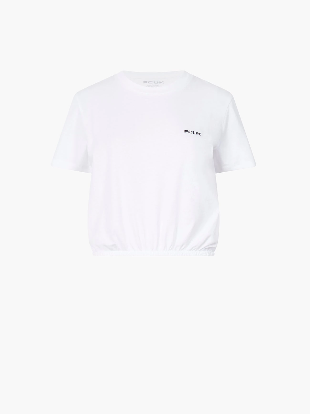 Elevate your everyday basics with the FCUK Organic Cotton Elastic Hem T-Shirt. In monochrome hues, this responsible t-shirt features a round neckline, short sleeves and stands out from the crowd with the FCUK logo and elasticated hem for a fun finish.