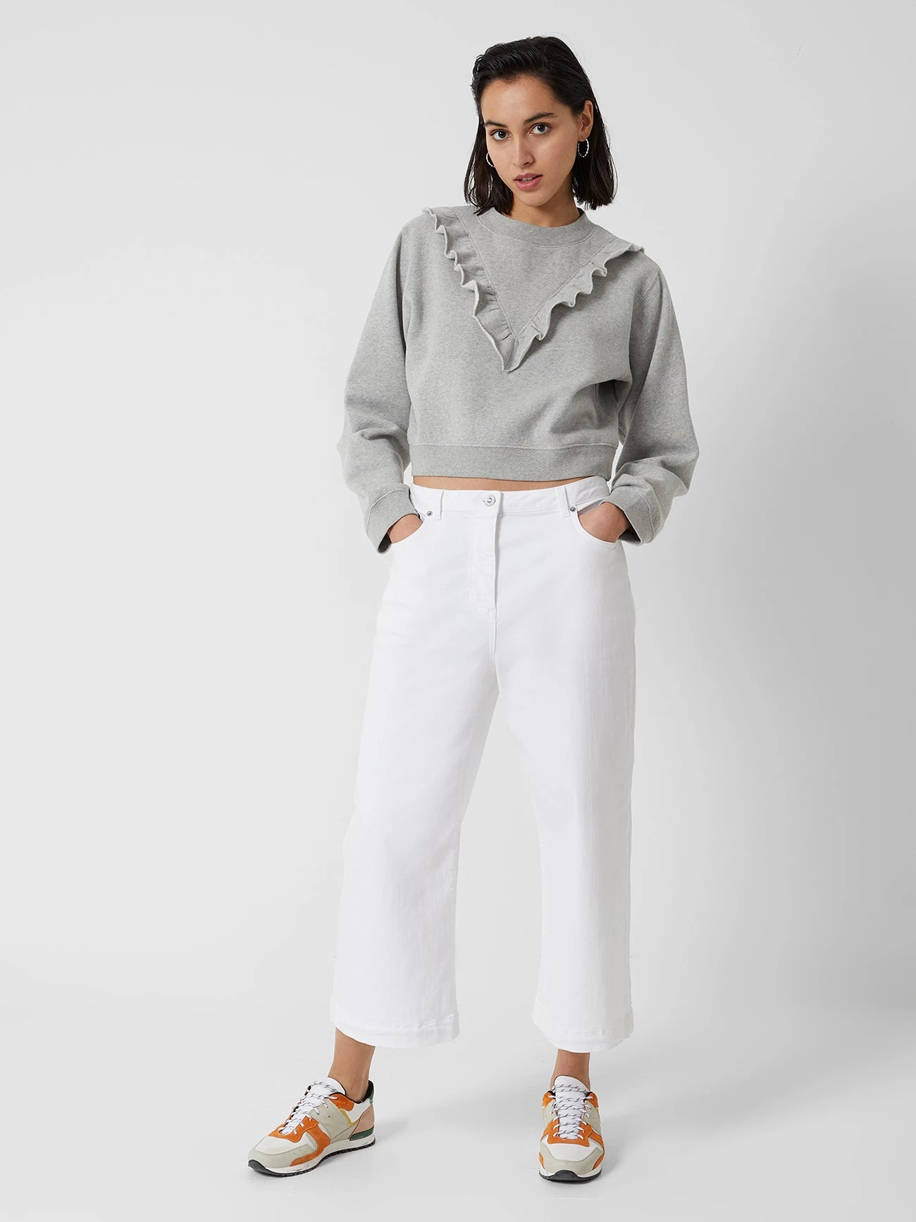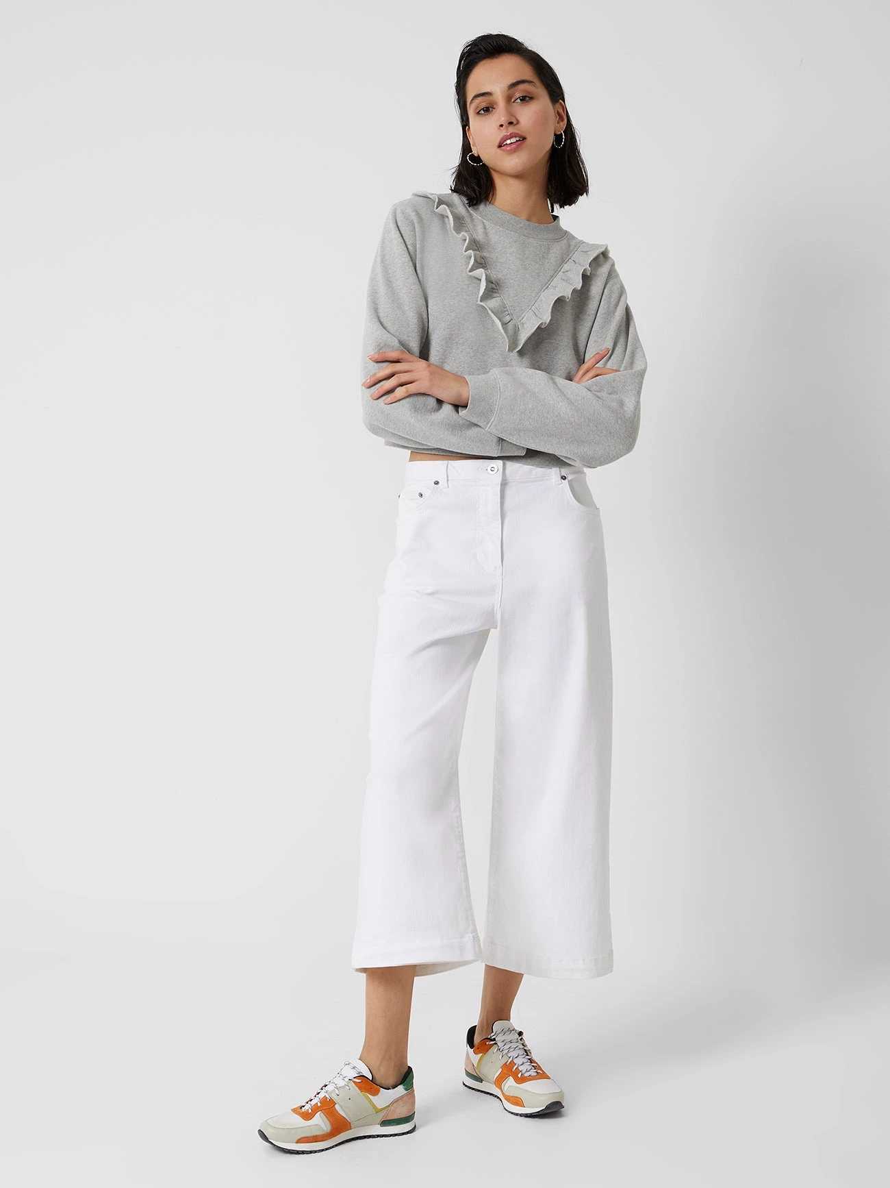 There isn’t a style where ruffles wouldn’t make a perfect adornment. Our Ruffle Crew Neck Sweatshirt is soft to the touch and has a ruffled trim.