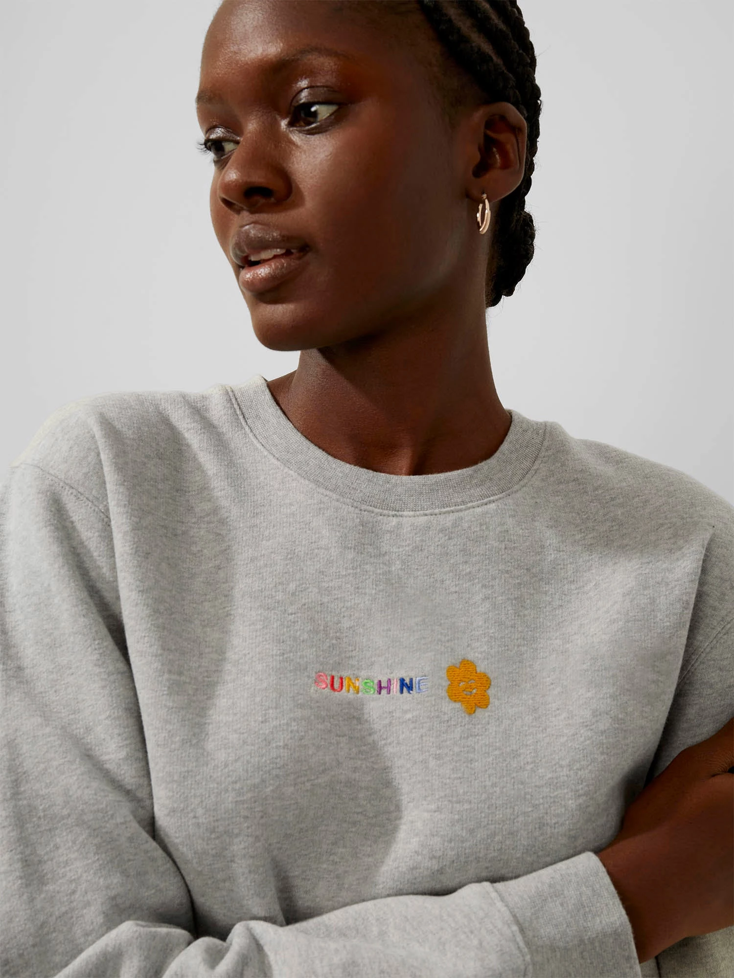 Everybody loves the sunshine – and our Sunshine Graphic Sweatshirt of course. Spun from soft-touch cotton with a miniature embroidery detail at the chest.