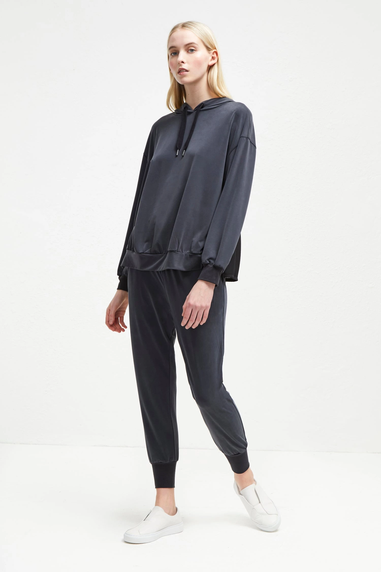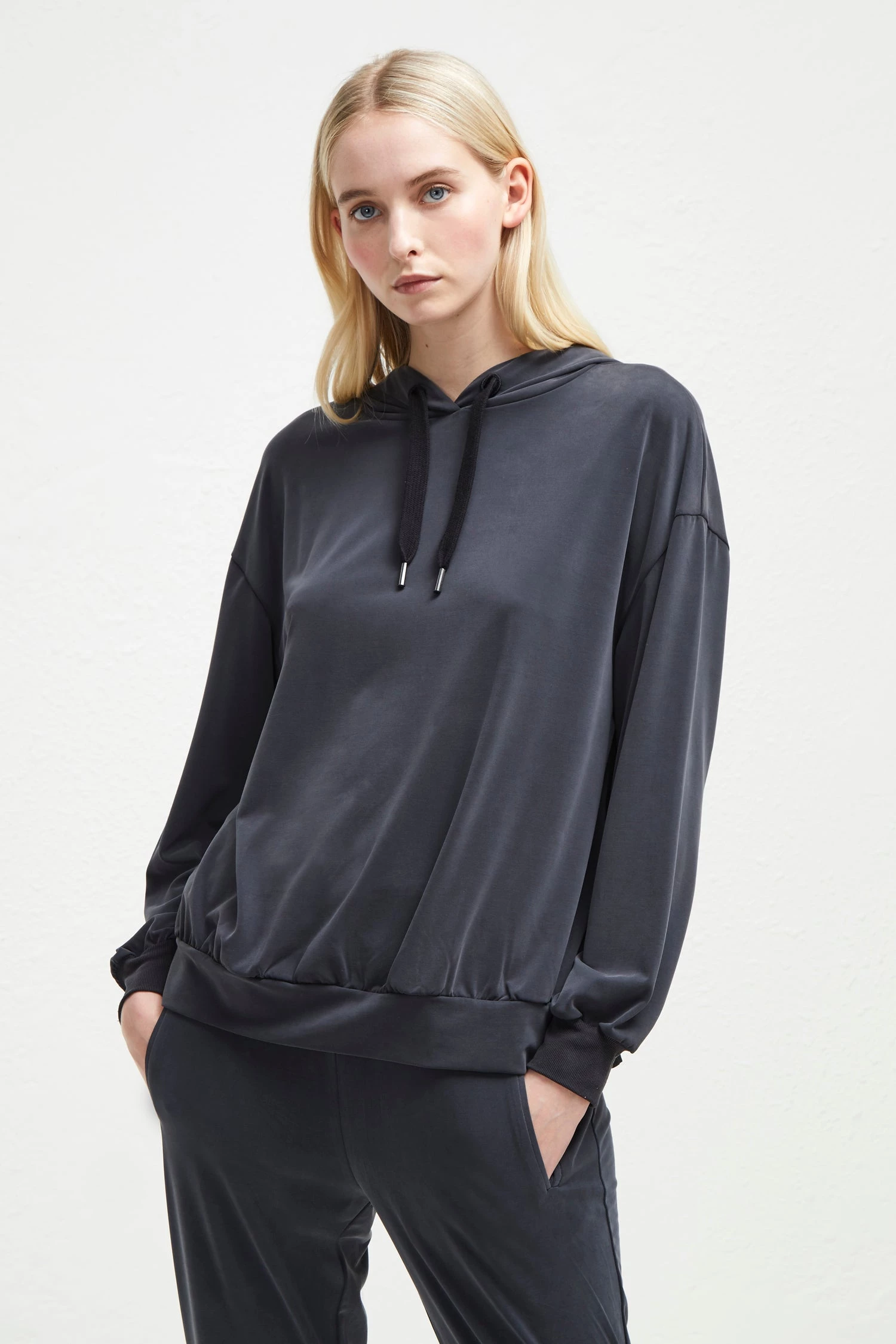 Every off-duty wardrobe needs a cosy sweatshirt. For this season and beyond, reach for the Washed Cupro Jersey Hoodie for guaranteed comfort. The jersey sweatshirt has a relaxed fit and features a drawstring hood, creating the perfect layering piece over t-shirts and jeans.