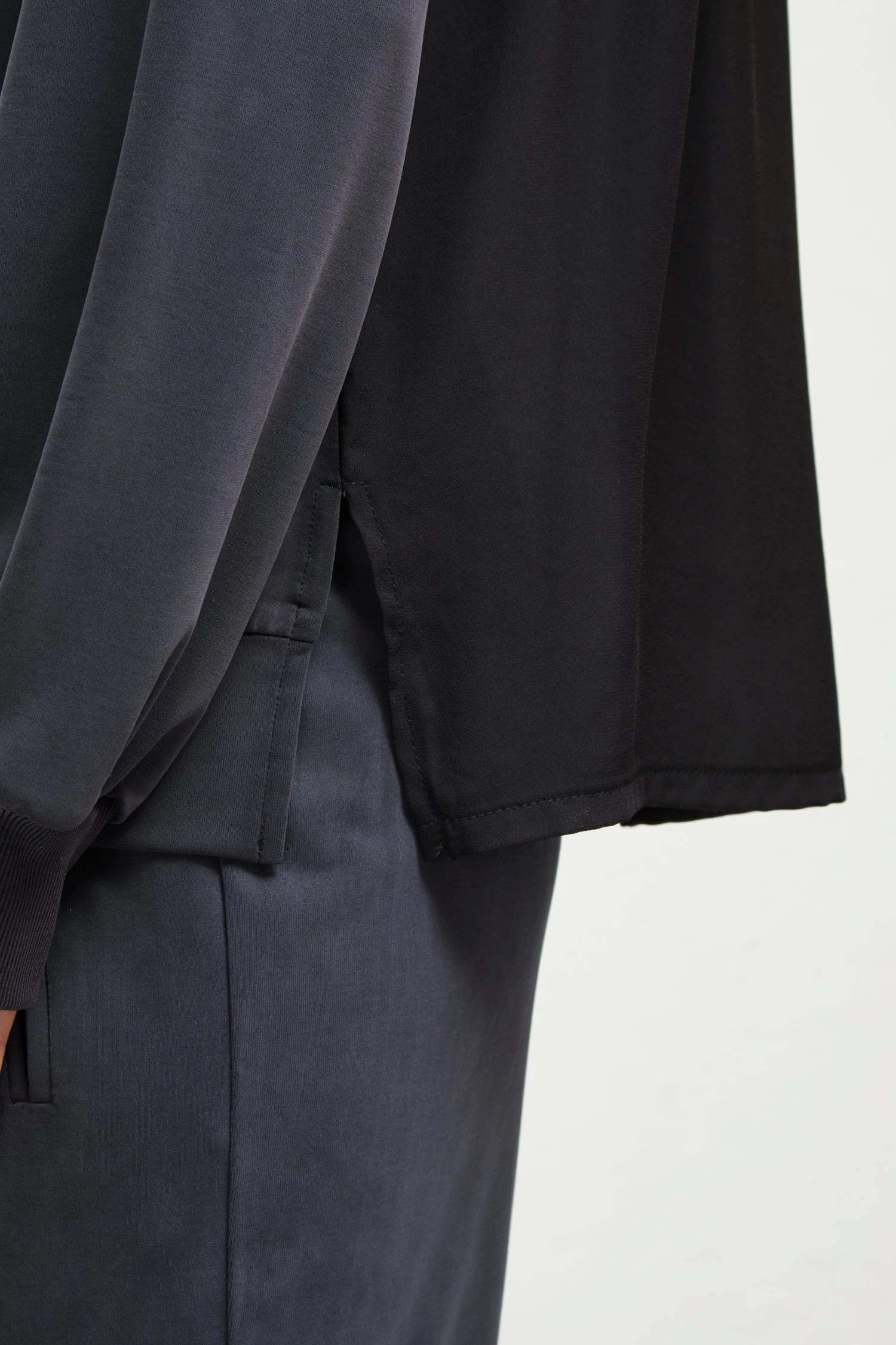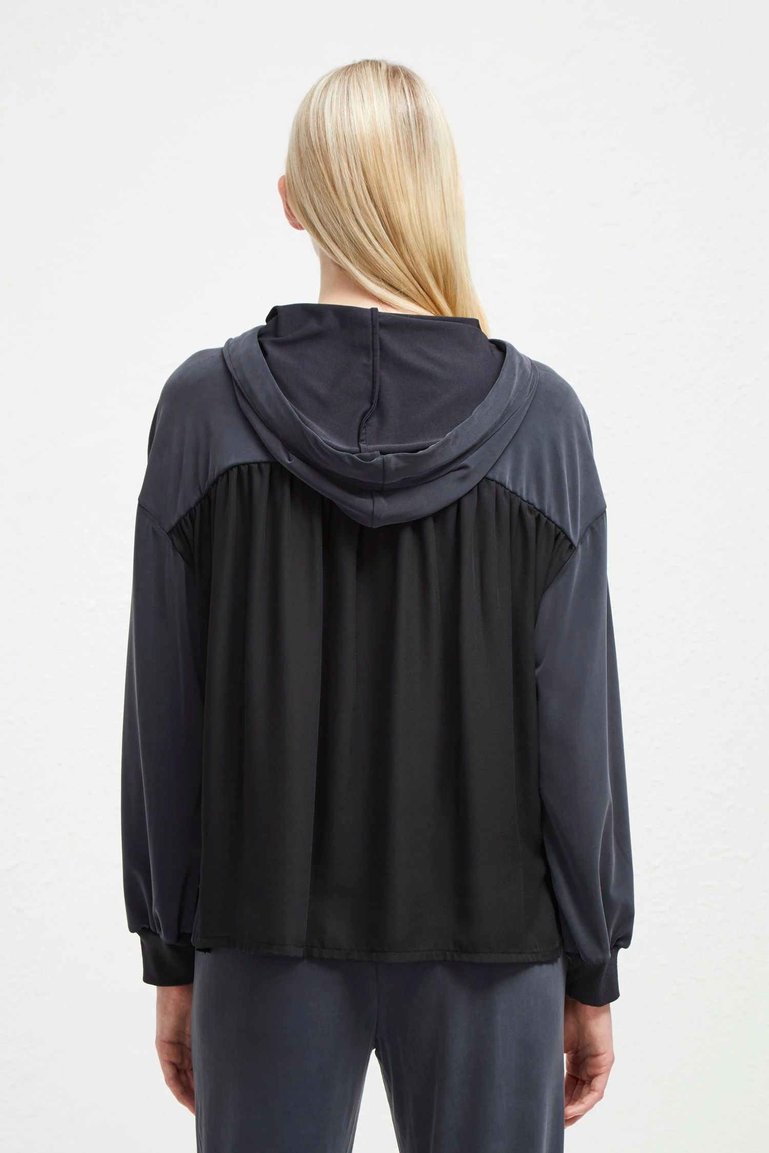 - Hood with elasticated drawstring fastening