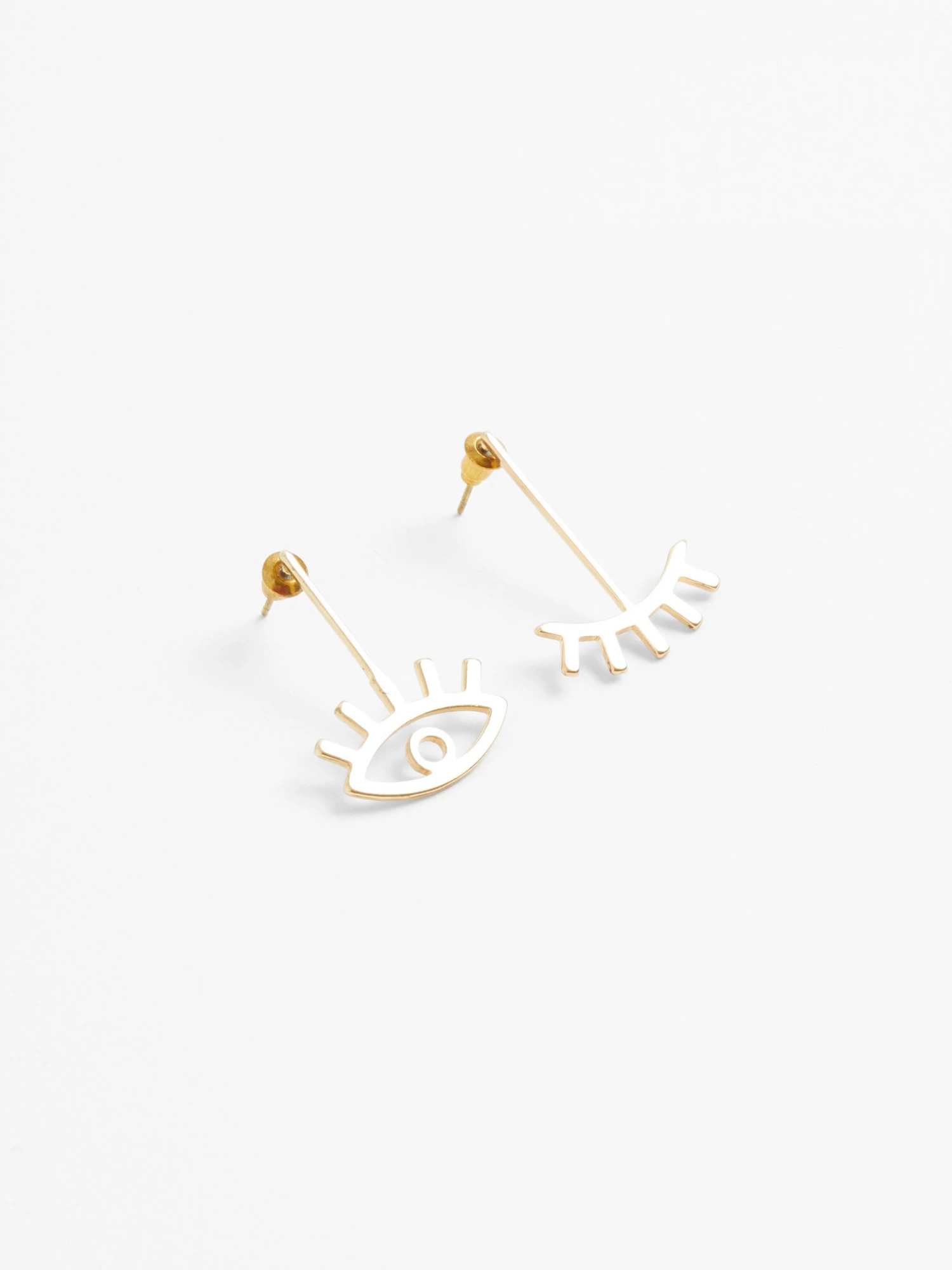 Let the Wink Earrings do all the seducing. The pierce-back earrings feature a fun winking eye design in gold tone.