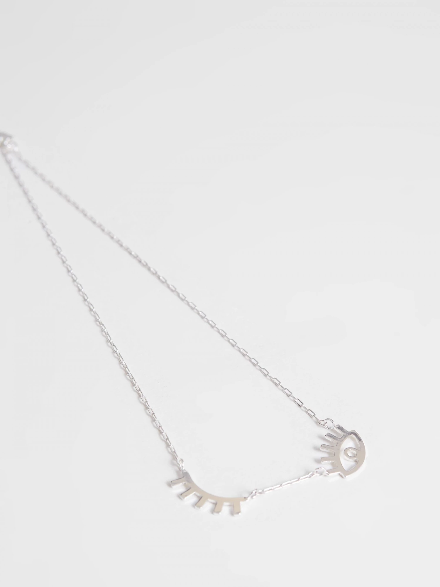 Hello cheeky. Our Wink Necklace makes for a fun and flirty accessory, with a fine silver tone chain hosting two eye motifs. Style with the matching earrings for a cheeky co-ordinating look.