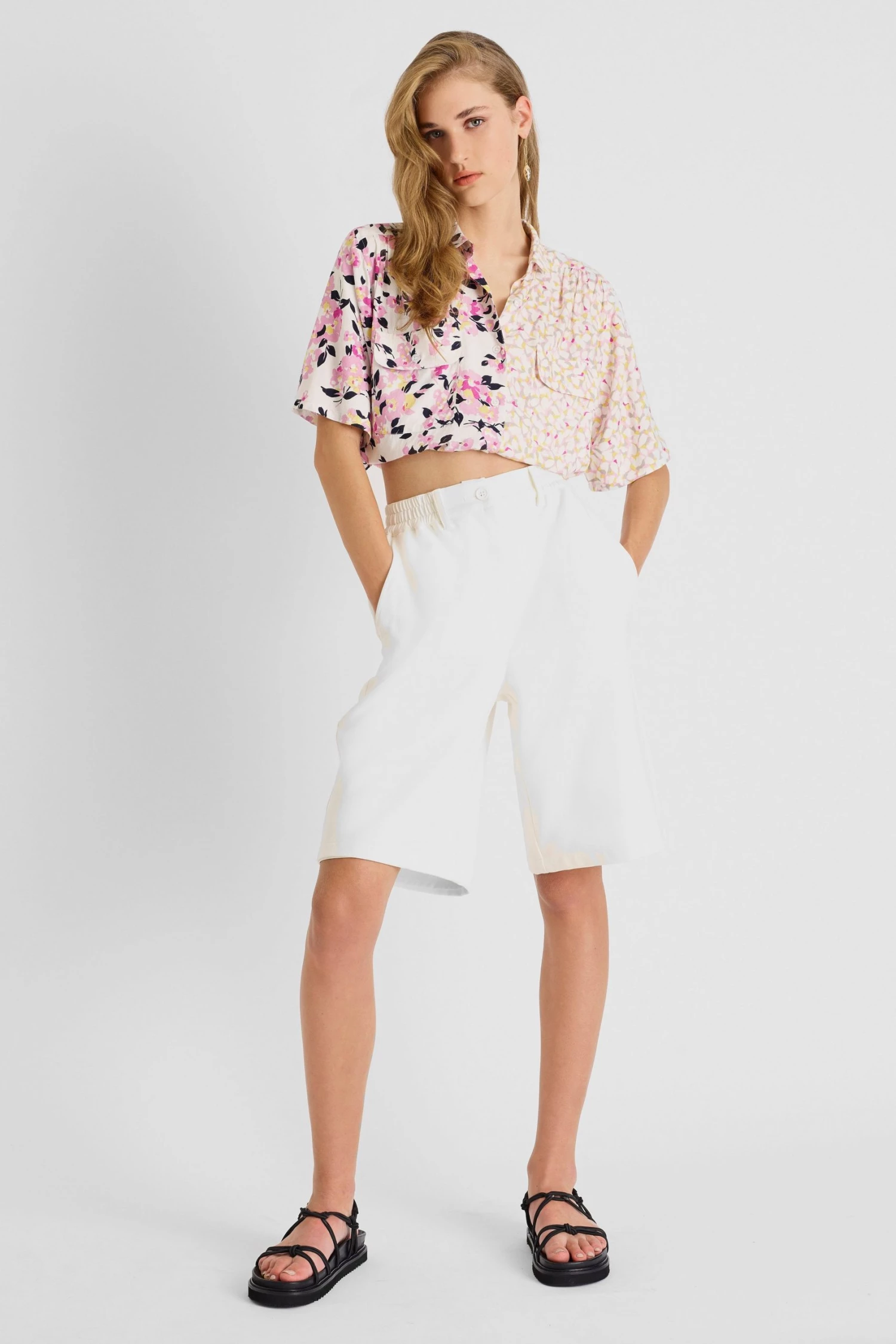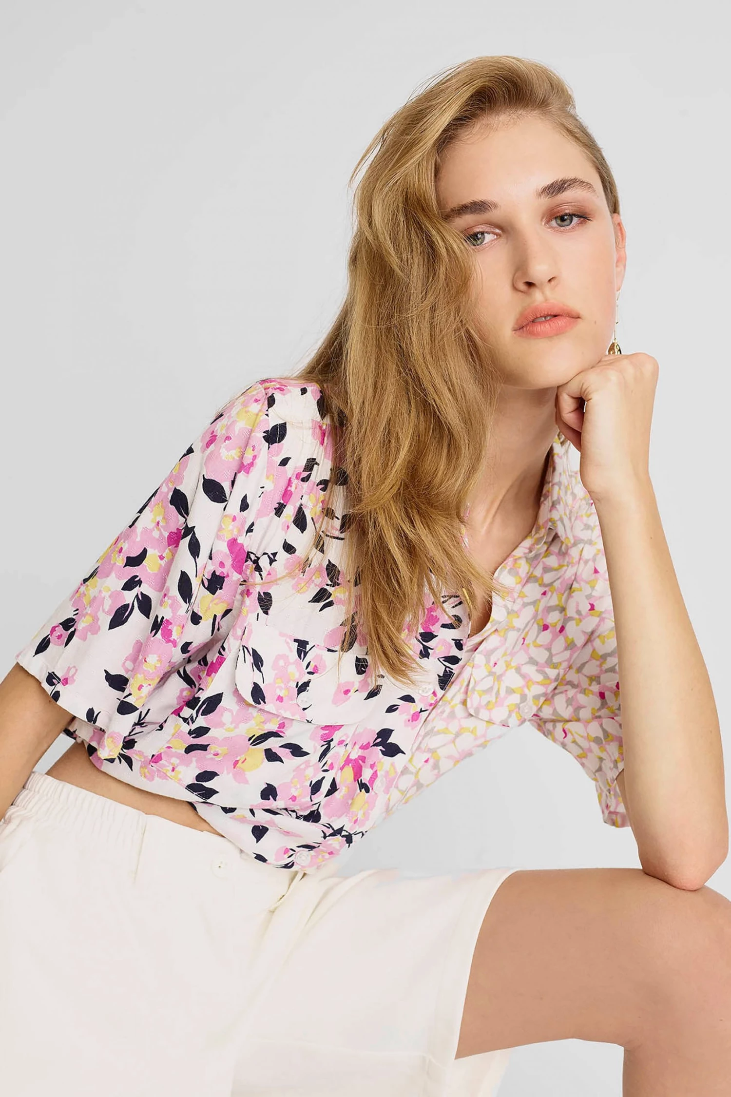 This summer, let’s get shirty. Our Yulia Printed Cropped Shirt spotlights a vibrant floral pattern atop lightweight fabric, chest pockets and a cropped cut.