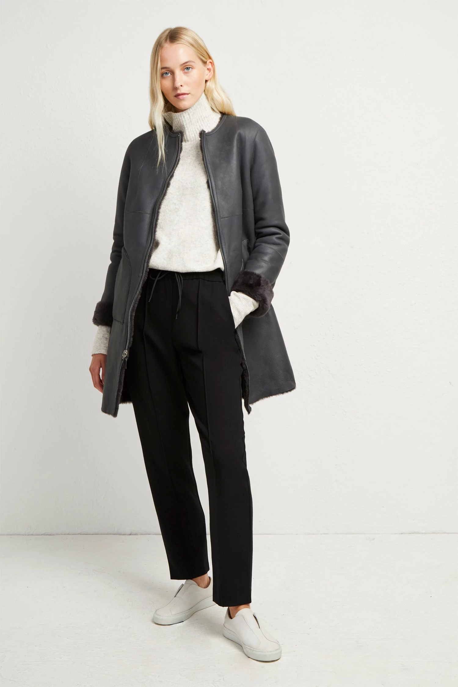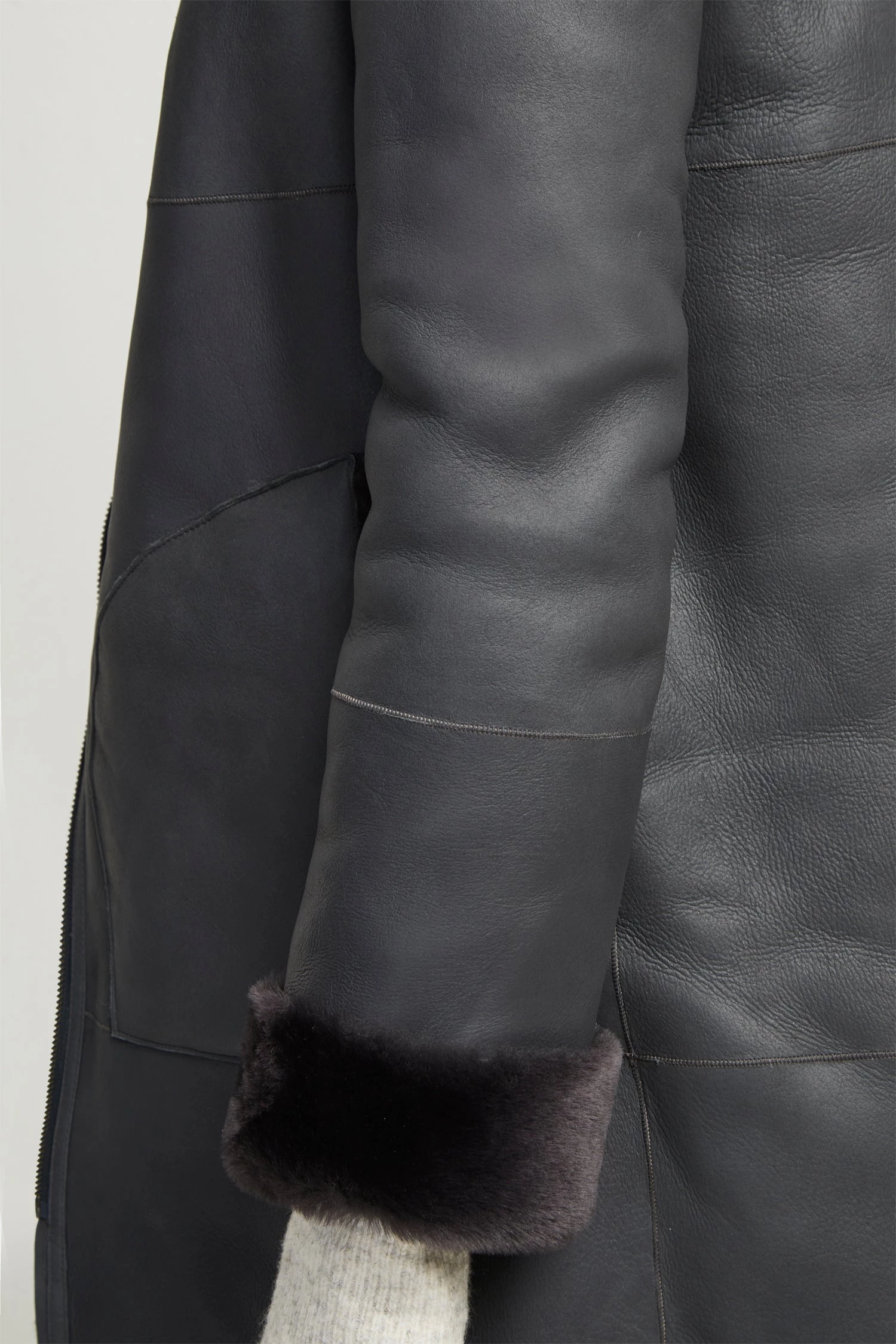 - Reversible leather shearling coat